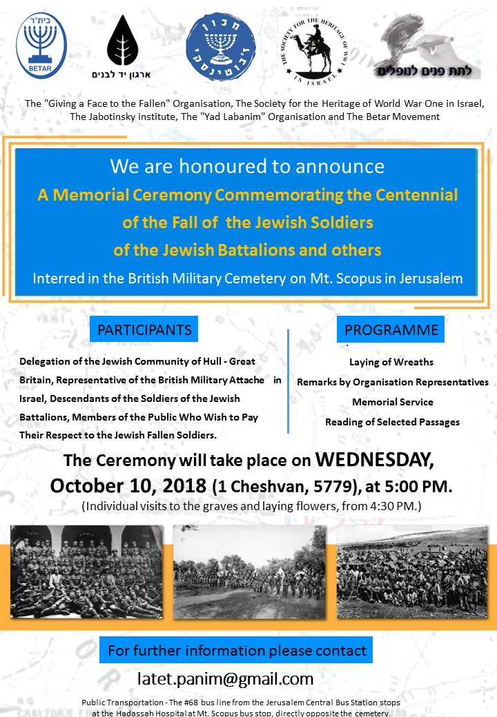 A Memorial Ceremony Commemorating the Centennial of the Fall of the Jewish Soldiers of the Jewish Battalions.