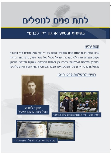 ארגון המתנדבים 'לתת פנים לנופלים', שמטרתו הנצחת חללי מערכות ישראל, עוסק בין השאר, בהשלמת פרטי חייהם של חללי מערכות ישראל, שמצבותיהם חסרות מידע וקורות חייהם לא ידועים, זאת מתוך כוונה, להשלים את חוב הזיכרון שאנו חבים, לאלו שנפלו על הקמת מדינת ישראל.