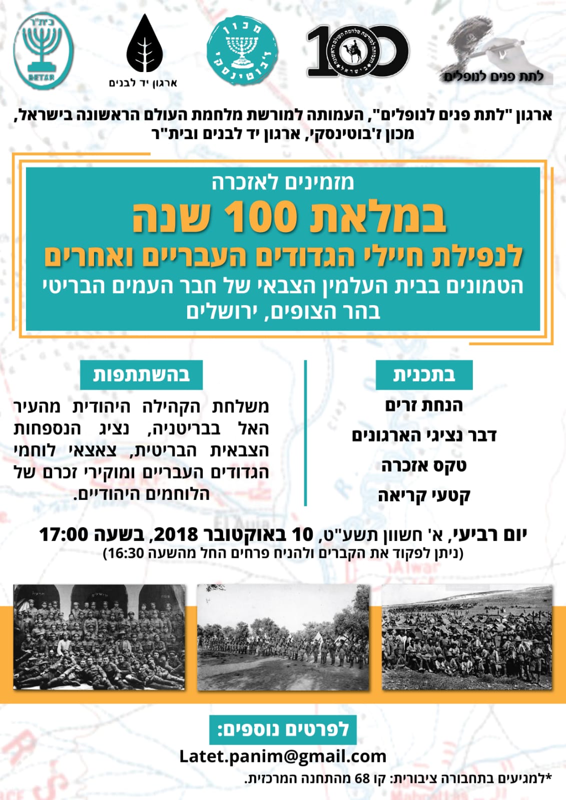 יום רביעי 10 באוקטובר, 2018, בשעה 17:00 בבית העלמין הבריטי בהר הצופים.